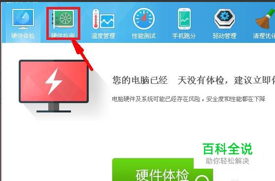 接着点击打开鲁大师软件,在新的页面中找到硬件检测。如图。