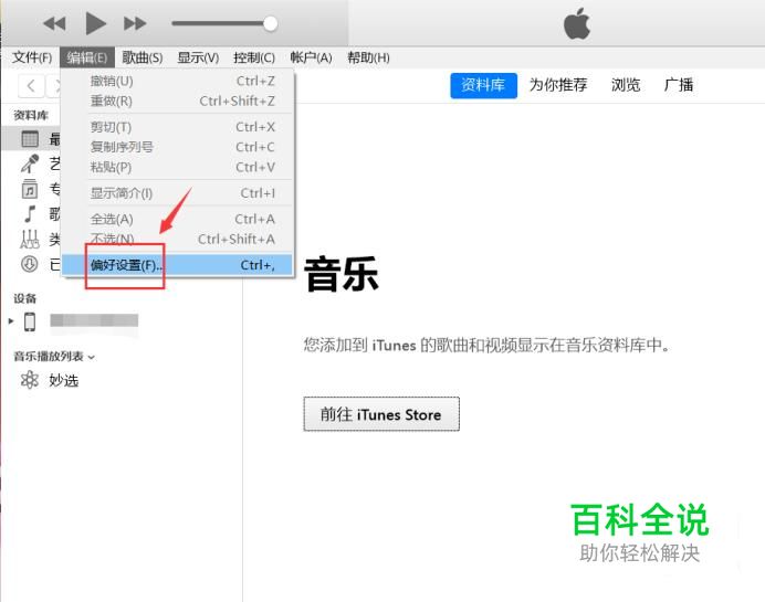 打开电脑上面的iTunes软件,找到菜单栏的“编辑”。