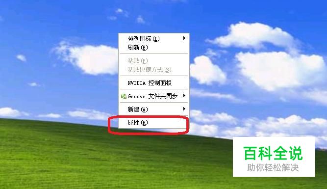 首先,我们打开电脑,然后右键点击桌面,如图所示,选择“属性”。