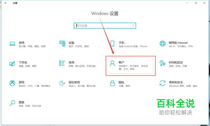 进入Windows设置,点击如图位置的账户选项。