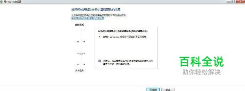 你可以通过滑动滑块来调节【什么时候通知我】建议滑到第块【 仅在程序尝试对我的计算机进行更改时通知我)】也就是说,如果有程序想更改你的计算机(无论是病毒还是迅雷看看等软件)电脑都会通知你,屏幕背景会变黑(这时处于安全模式)直到你允许该程序运行,它才会运行。