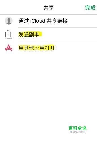 选择“发送副本”或“用其他应用打开”