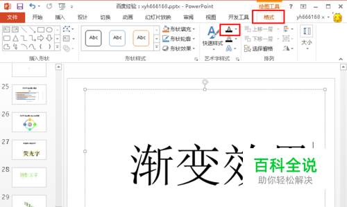 选择好渐变效果后,关闭设置形状格式对话框,我们可以更好的查看我们制作的渐变效果的文字