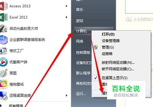 首先确认win7系统是32还是64位. 点击开始菜单,在 计算机 上点击右键,选择属性。