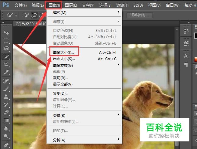 点击菜单栏中的“图像”,找到“图像大小”并点击。