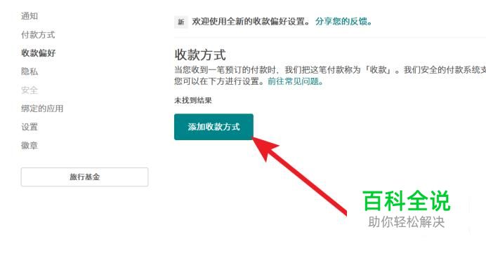在左侧选择收款偏好,添加收款方式。