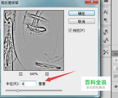 点击高反差保留选项在弹出的对话框内设置参数如图所示: