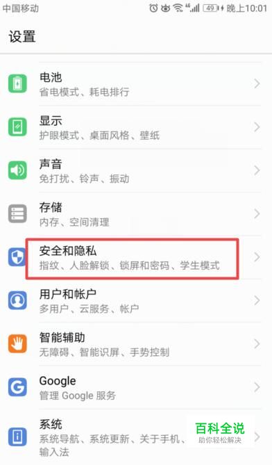 之后,我们点击安全和隐私;