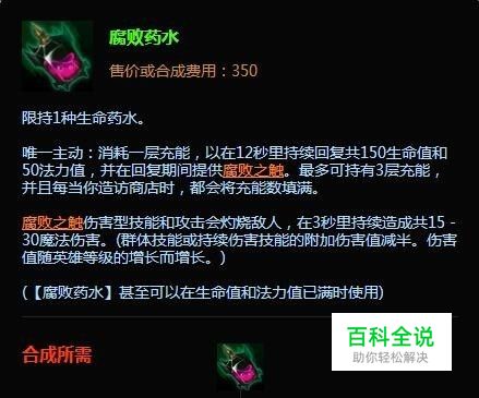 河流之王塔姆出门装: 腐败药水+监视图腾 对于我们来说河流之王塔姆前期还是以消耗为主的,我们在打野支援的时候,就可以很好的利用我们的被动完成击杀了。