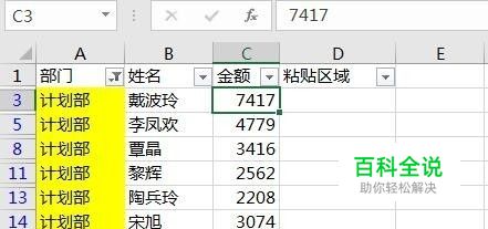经常在一些QQ群遇到有人提问在筛状态下如何正确的操作复制粘贴,也就是粘贴时跳过隐藏的单元格,入下图所示,在筛选状态下复制粘贴计划部的金额。方方格子是一款优秀的Excel插件,接下面我们来学习如何借助方方格子来完成这个操作。
