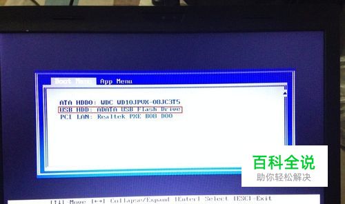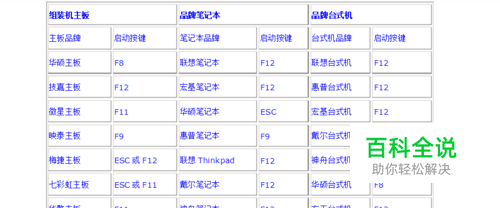 首先将大白菜PE 优盘插到电脑上,然后开机,按开机启动项热键,联想的按F12,其他品牌见下图。进入选择菜单,选择自己的优盘那一项
