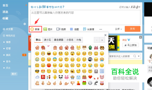 点击“表情”,可以在这个里边选择你需要用到的表情