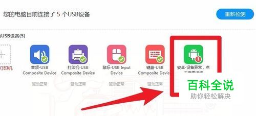 第一步: 电脑在插入U盘之后,用驱动人生检测后,发现提示【设备异常】,遇到这种情况,不要盲目的判断是电脑系统的问题,或者是驱动的问题。