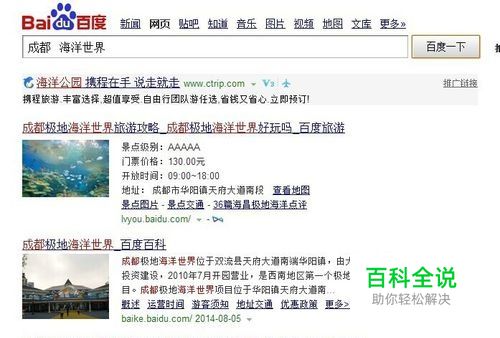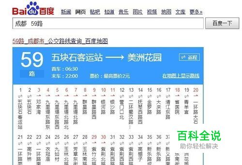 一、关键字搜索 例1:搜索“成都市海昌极地海洋世界” 特有关键字“成都” “海洋世界” 例2:搜索“成都59路公交车的运行线路” 关键字 “成都” “59路” “线路” 但是实际上百度已经智能识别了很多功能和关键字 只需要 “成都” “59路” 即可