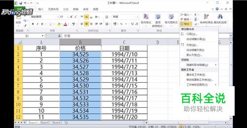 以素材为例,首先选中价格一列数据,点击Excel菜单栏左上方的“开始”,点击“格式”,点击“设置单元格格式”。