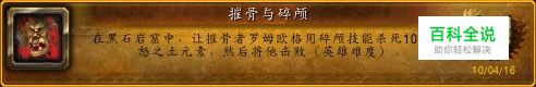 [摧骨与碎颅]是在黑石岩窟中完成的成就,成就要求玩家在与摧骨者罗姆欧格的战斗中让它用碎颅技能杀死10个愤怒的土元素。