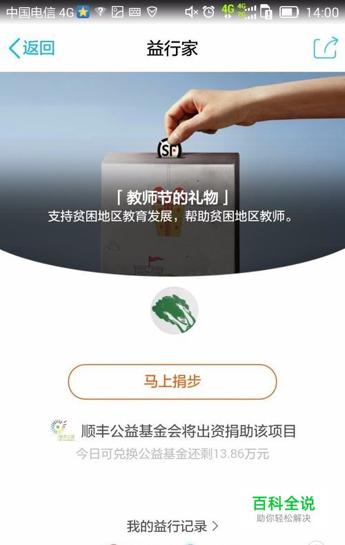 点击这个选项后,用户就进入到了【益行家】的界面了,点击【马上捐步】来开启的公益之旅吧。