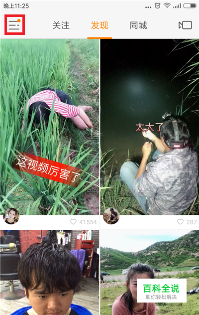 进入快手首页后,找到左上角的【三】按钮并点击。