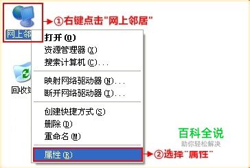 将电脑上的本地连接IP地址设置为“自动获得IP地址” 1.右键点击桌面上的“网上邻居”,选择“属性
