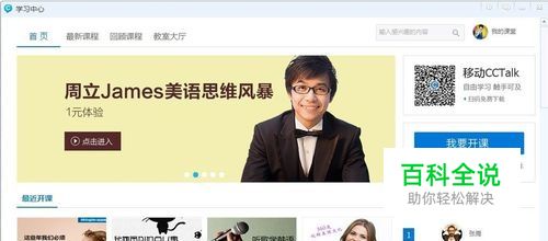 这时,就会弹出学习中心和CCtalk两个界面。右边也可以点击【进入学习中心】到达左侧页面。其中正在上的课会显示在学习中心-【最近开课】或【最新课程】中,当然也会在右侧页面显示,直接点击听课就可以进入课堂。