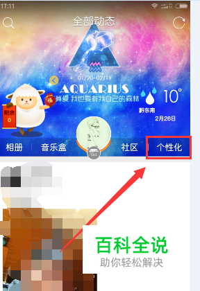 首先我们打开QQ空间,点击个性化。