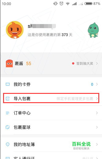 打开手机中的菜鸟裹裹APP,如果没有的话,可以在应用市场下载安装,打开之后如图所示的界面,点击我的标签页面,然后选择导入包裹选项