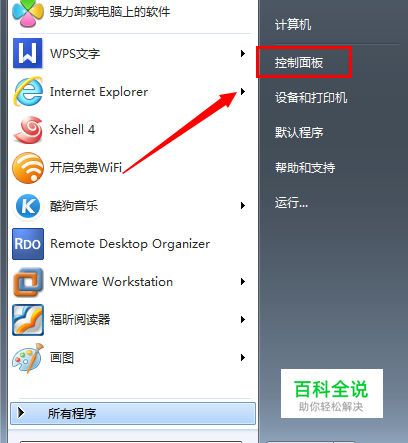 设置windows防火墙需要到控制面板里面去设置,点击开始菜单打开 “控制面板”如图