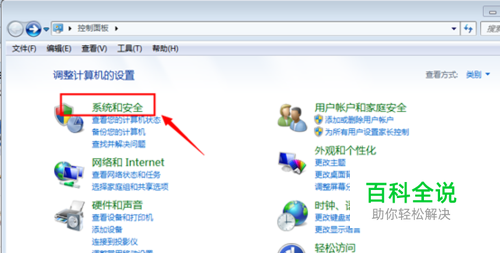 出现的 “控制面板”对话框中,找到 “系统和安全”功能列表