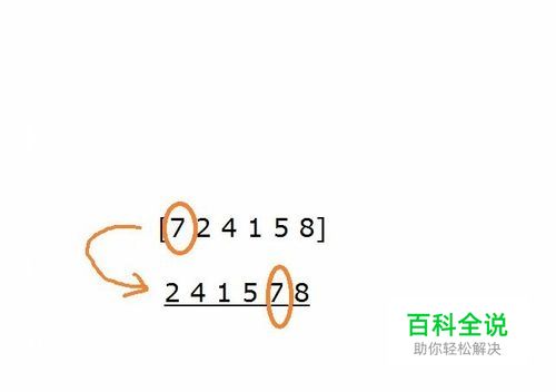 先把数组的第一项[7]取出来, 比[7]小的数通通放在[7]前边,比[7]大的就放[7]后边,只有8比7大。