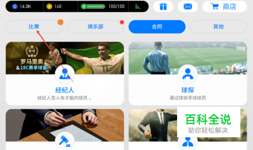 实况足球手游中如果我们想要跟其他玩家进行PK,进入游戏主页后首先点击左上角的【比赛】。