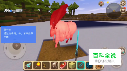 通过击杀鸡,牛,羊来拾取生肉。