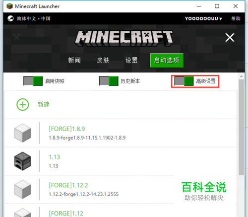 选择要设置的游戏版本,比如我这里是1.8.9的forge版本
