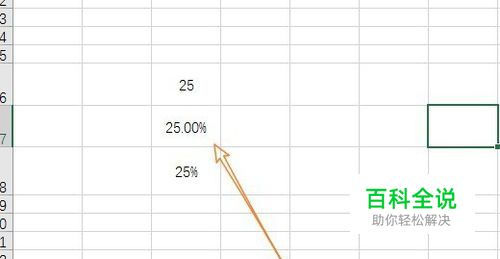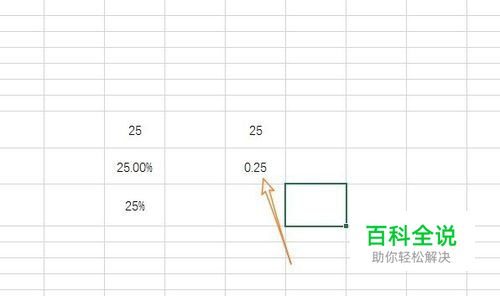 显示成了25%,那要怎么保留两位小数点呢,再输入一个0.25在旁边单元格。