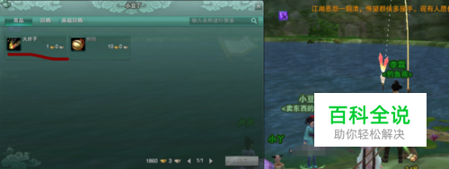 点NPC(李霖)可购买鱼竿和鱼饵。鱼竿买一个就行了,可以重复使用,但是鱼饵得多买一点。钓一次鱼需要消耗一个鱼饵。