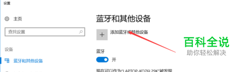 首先,在笔记本电脑window设置中,打开蓝牙设备,然后点击“添加蓝牙或其他设备”。