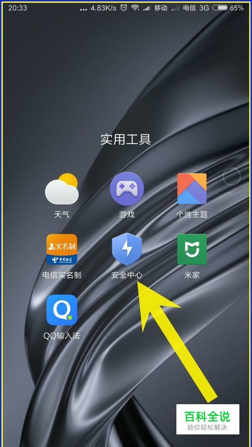 首先在手机上面找到安全中心,点击进入,如下图所示。