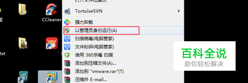 按鼠标右键,选择“以管理员身份运行”