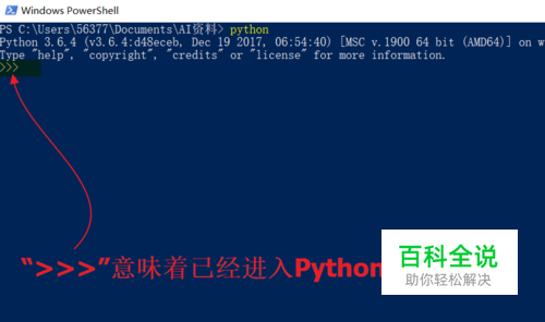 打开Python交互式环境。 Python下载安装完成之后,打开CMD或powershell,输入“python”指令,即可看到出现“>>>”,即意味着进入Python交互式环境。