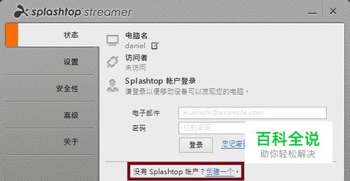 注册:如果你已经有splashtop账号,那么可以跳过这一步。如果你没有splashtop账号,那么点击图中的红色区域。弹出注册窗口,注册一个账号。注意这个账号是以后的凭证
