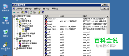 单击 系统工具-本地用户和组-用户 就会出现用户界面