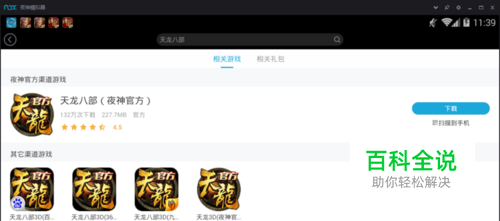 第二:下载或安装《天龙八部手游》到夜神安卓模拟器上。点击打开模拟器,然后进入模拟器桌面,左键鼠标拖动桌面向左滑动,然后在上方的搜索框搜索《天龙八部手游》,然后点击下载安装即可;如果搜索无结果,玩家可登陆《天龙八部手游》指定的网站下载最新版的安卓版apk文件,然后将下载完成的apk文件拖拽到模拟器桌面自动安装即可。