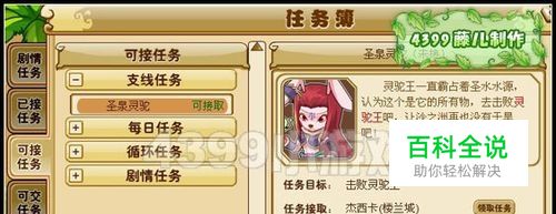 嗯,简单的小任务,打一个BOSS灵驼王,找杰西卡接任务--圣泉灵驼