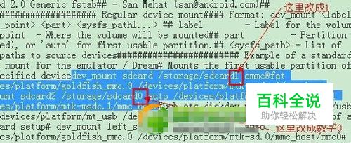 2、root后手机下载个root explorer,打开/system/etc目录找到vold.fstab文件并复制到存储卡再复制到电脑 。用记事本打开vold.fstab,要修改的地方就2处。 (提示:一定要用记事本打开,不要用写字板。这个文件文字都在一行,写字板会把文字自动分行,不然替换后内外卡都会不见了)