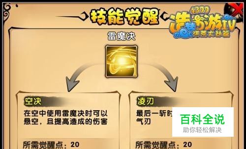 火魔斩:冲向空中释放火魔九连斩,落地后为最后一斩,造成极高伤害。 齐天:对空中怪物附带额外伤害,技能越高技能效果越好。 灼烧:落地重击附带灼烧效果,技能等级越高效果越好。 点评:看起来大家都会觉得灼烧最好,其实并不是这样的。因为升龙斩把怪物挑到空中就可以触发齐天的效果。而灼烧只要最后一击打到不管是谁,都会附带灼烧效果。火魔斩一级配合升龙斩,耗蓝少打的输出高;火魔斩满级,觉醒灼烧,强化了火魔斩的伤害,又增加了悟空的爆发。因此两种觉醒比较适合,不同的加点,点出不同的觉醒。 总结:火魔斩一级觉醒齐天,满级觉醒灼烧。