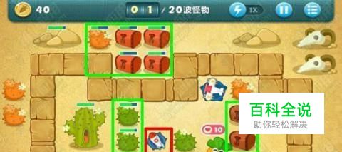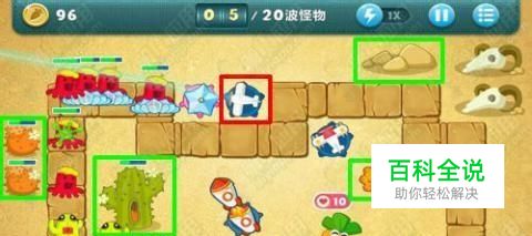保卫萝卜沙漠7关第二个步骤,玩具飞机升为中等级别后,接下来玩家需要快速摧毁绿色方框中的障碍物,并且把玩具飞机升为顶级,保卫萝卜沙漠7关第三个步骤,玩具飞机摧毁了障碍物后,可获得火箭和毒针炮塔各1个,接下来要以从上到下的方法摧毁绿色方框中的障碍物,然后把火箭炮塔升为顶级,火箭炮塔的可对敌人造成很大的伤害。