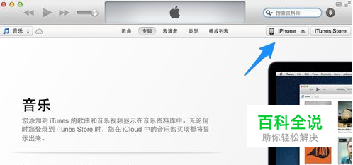 打开电脑上的 iTunes 软件,点击右上方的“iPhone”按钮