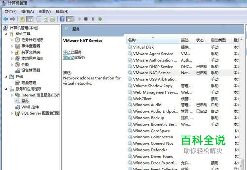 确认控制面板-》管理工具-》服务 中没有 VMware DHCP Service和VMware NAT Service