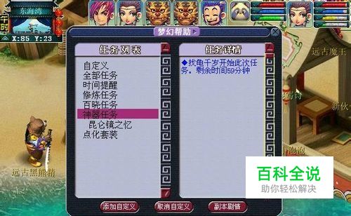 神器任务需要飞升级,在每周一至每周五的14:00-22:00期间前往天宫杨戬处领取任务.领取,领取时会消耗50点善恶点。同时任务中的每个环节有60分钟时间限制,每天的24:00会清空当日任务,另需五人组队领取,且每一个环节必须有3个领取任务的玩家参与才能通过