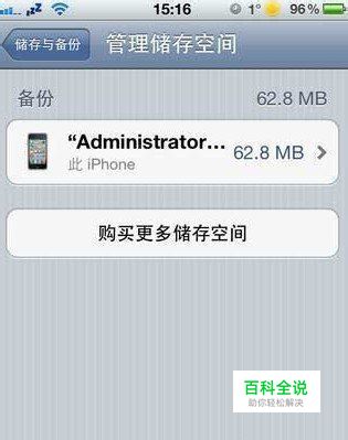 ⒊)之后我们进入“管理存储空间”,之后会看到有显示备份和邮件所占用的空间选择要管理设备的备份,iCloud会显示本机信息和最新备份的时间和大小等信息,如下图: