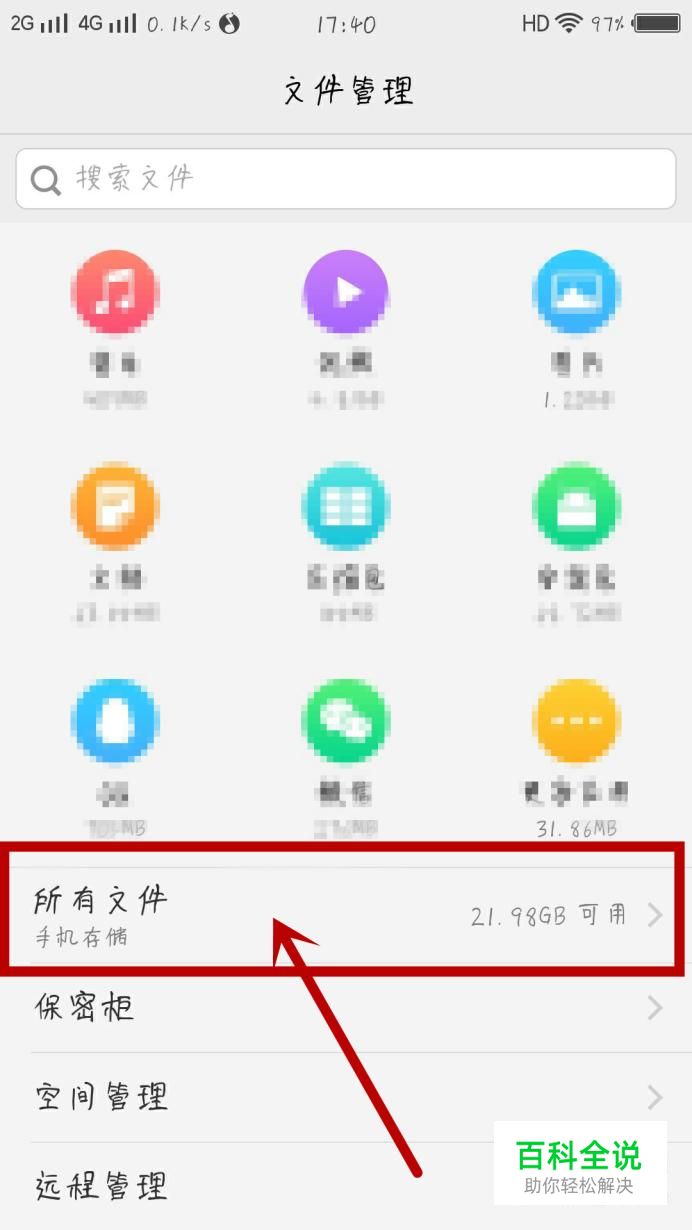 打开手机的文件管理,打开“所有文件”,如图所示。